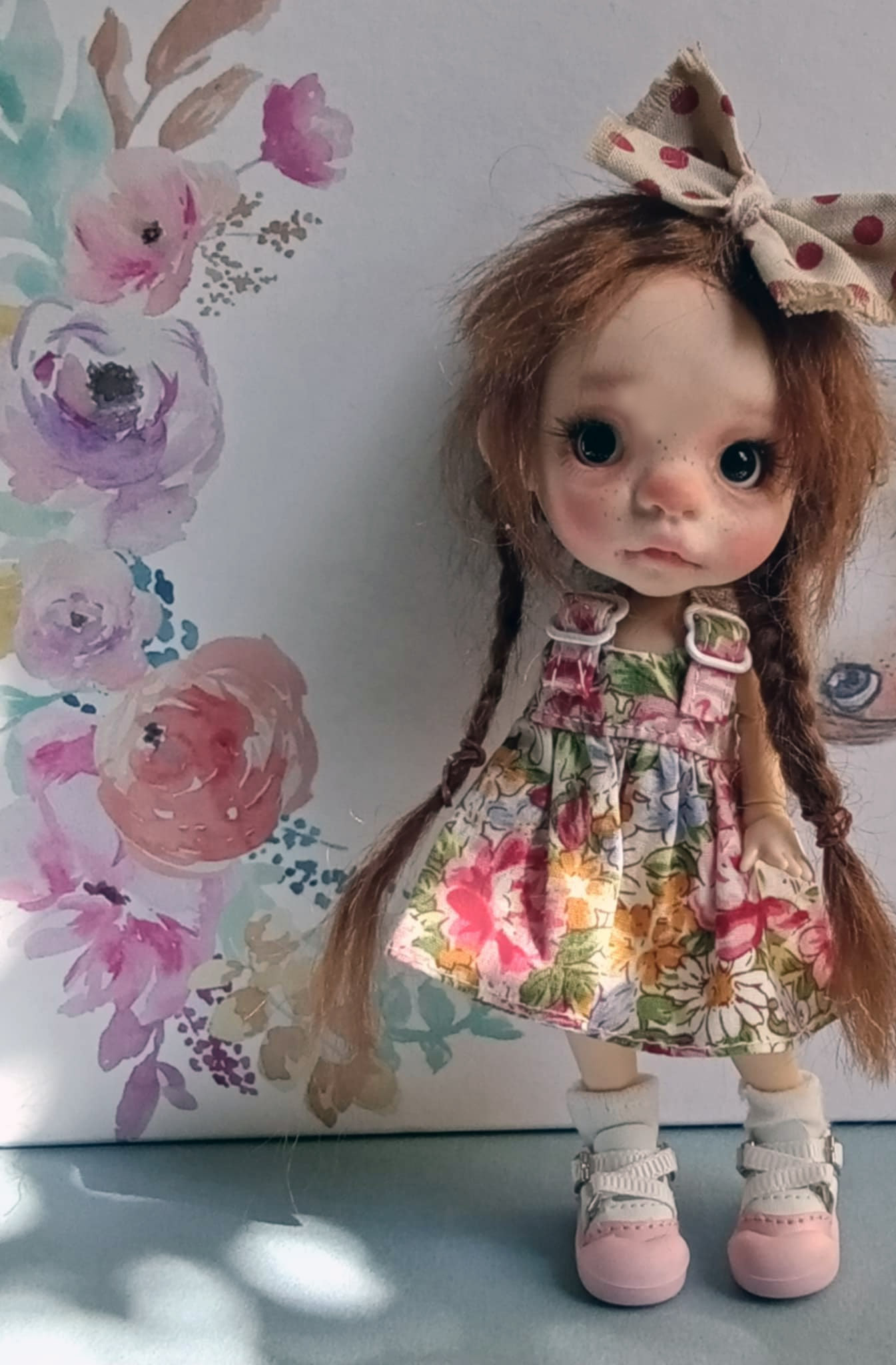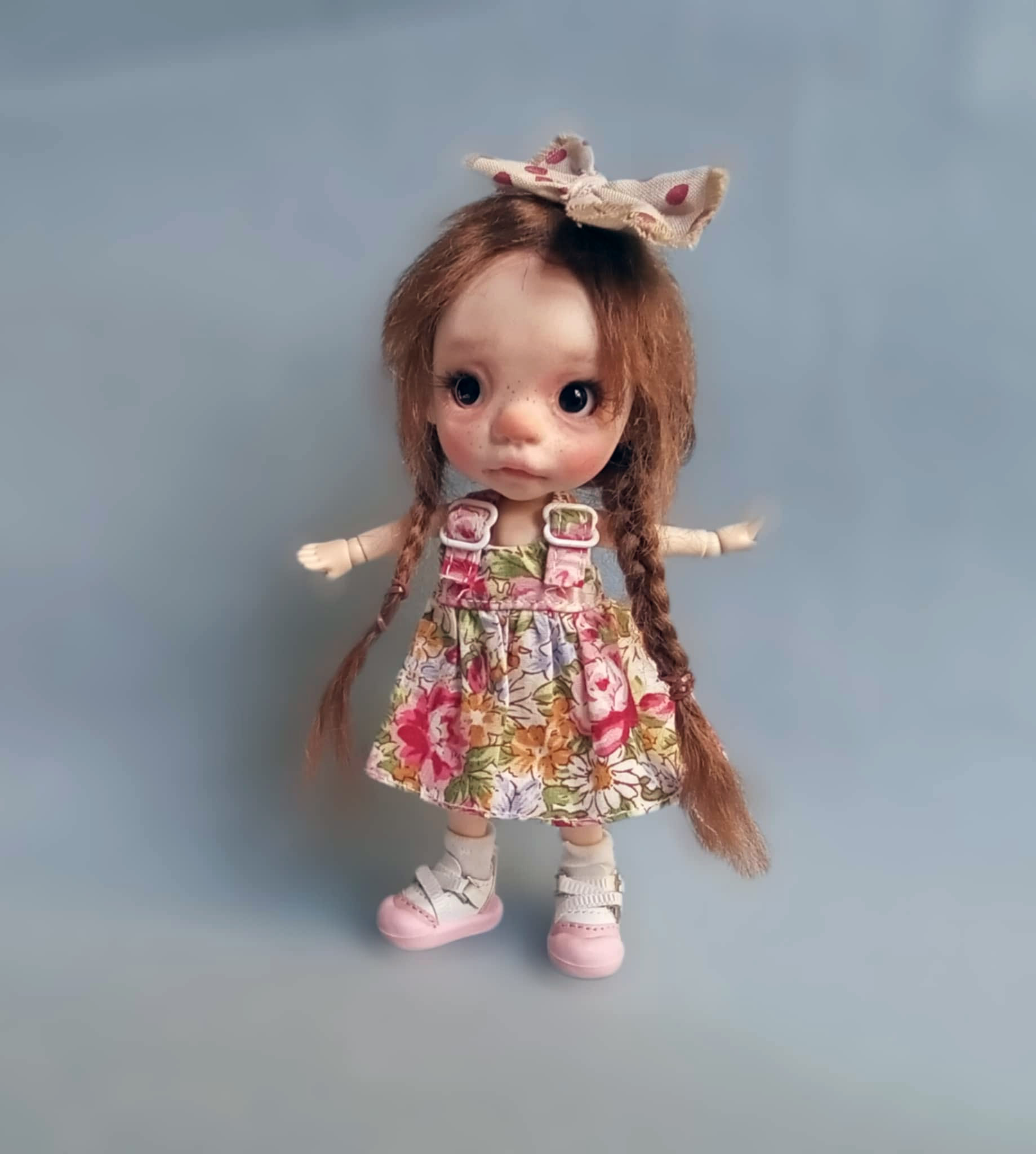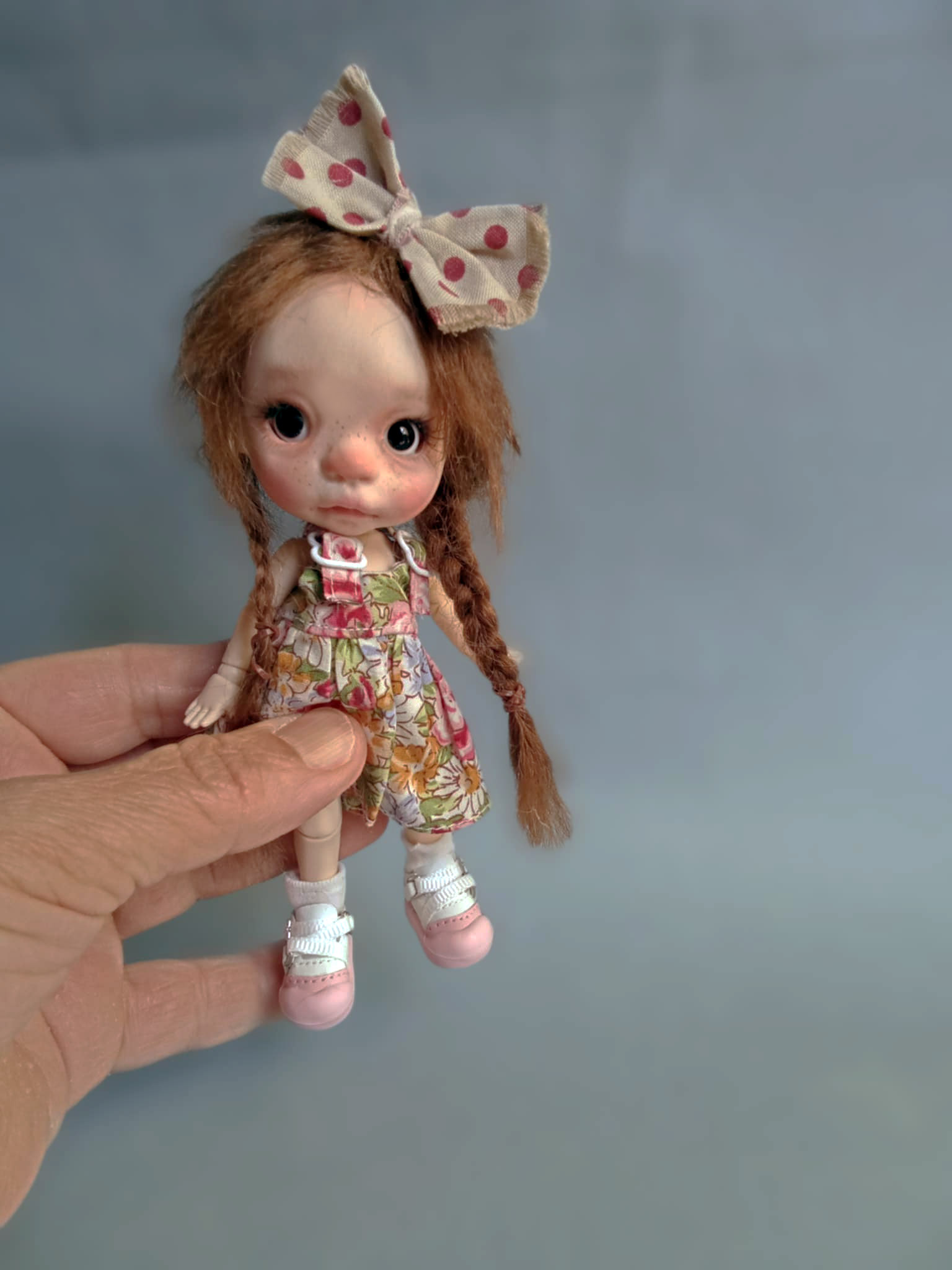 OOAK,hand painted face,bjd doll, resin 8” height with soft real mohair hair and outfits as my photos, by Ppinkydolls. You can replace wigs or add ob11cm size outfits. OOAK doll 8”,high quality resin handmade full jointed doll,hand painted face with gouache colors by me ,Chrishanthi-Ppinkydolls.