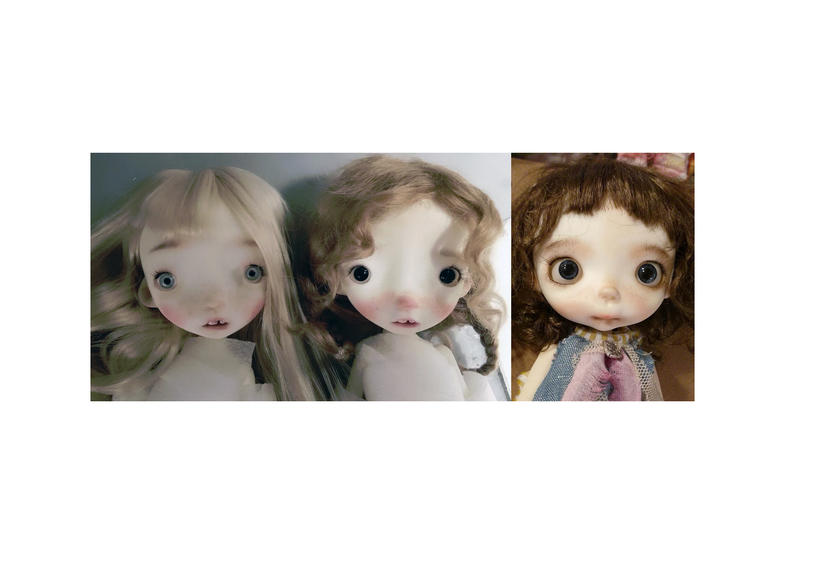 Home / All / Custom order for Yana(3 dolls) Custom order for Yana(3 dolls)SOLD Two Malisa dolls as photo..and one Miko doll with brown wig as photos/ 12” dolls with wigs-faceup-eyes -eyelashes..outfits not including Shipping for three dolls including with Fedex express Out of stock Category: All Product ID: 12658 Related products Angel’New bjd resin doll Edition by Ppinkydolls SOLD Read more Baby Carot 3.5 inches doll,joints body,full set SOLD Read more Baby Carot -Mia OOAK 3.5 inches doll,joints body,ready doll SOLD Read more Pepi” OOAK handmade doll with a tiny Chameleon SOLD Read more