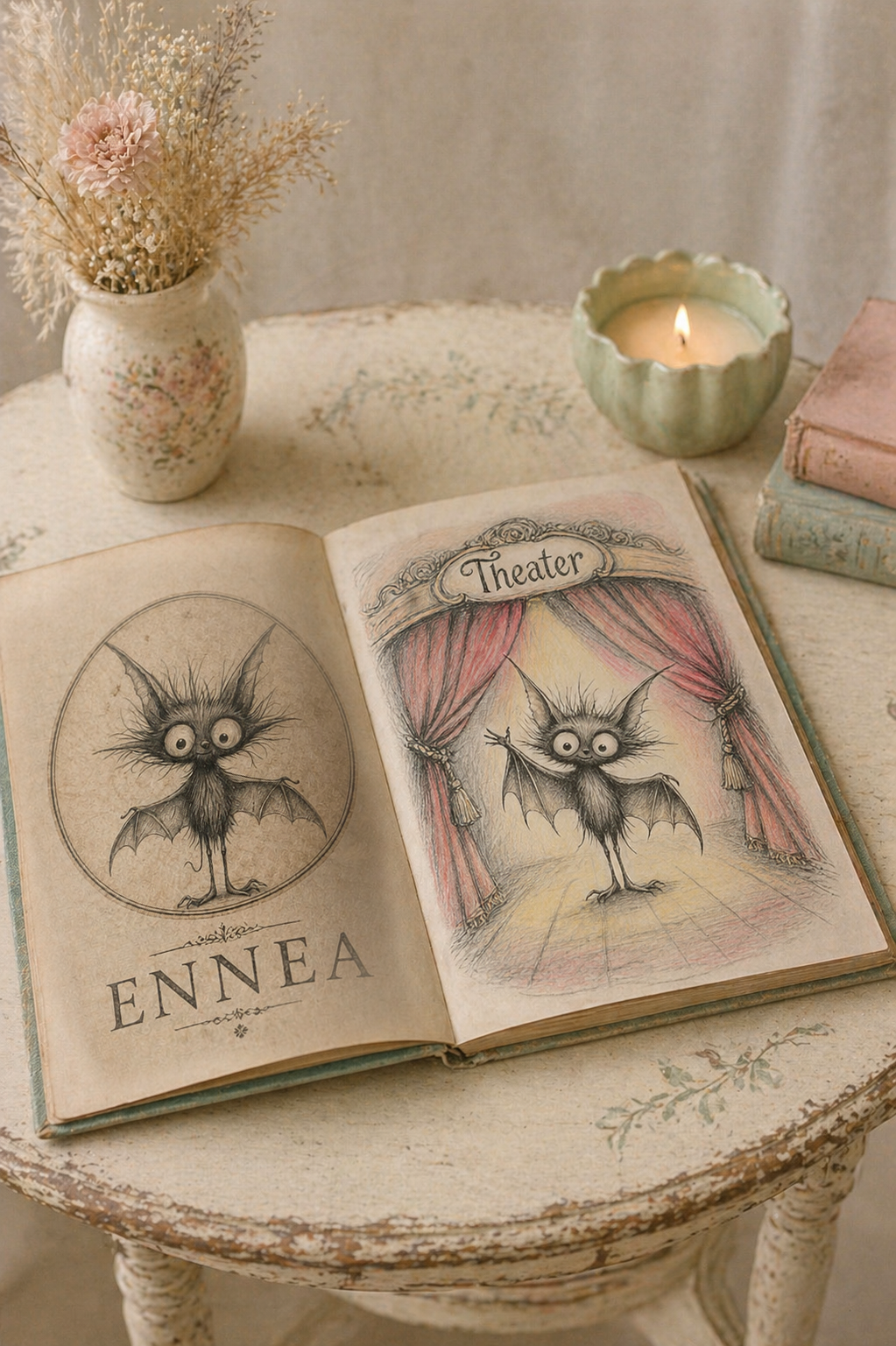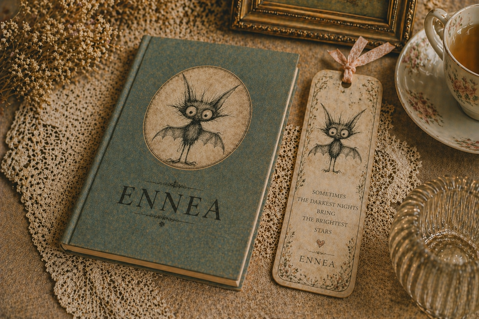 All texts and illustrations in ENNEA were lovingly created by me, Chrishanthi.Each page began as a quiet moment —drawn by hand with pencil and brought to life with soft watercolor hues.Every word, every line, every shade is part of a personal journey, made with care, patience,and a touch of wonder.Gift the bookmark.
