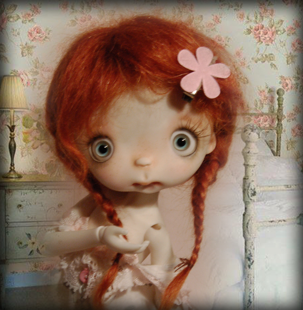 Hypate doll 11.5′ with faceup eyes red hair tails wig