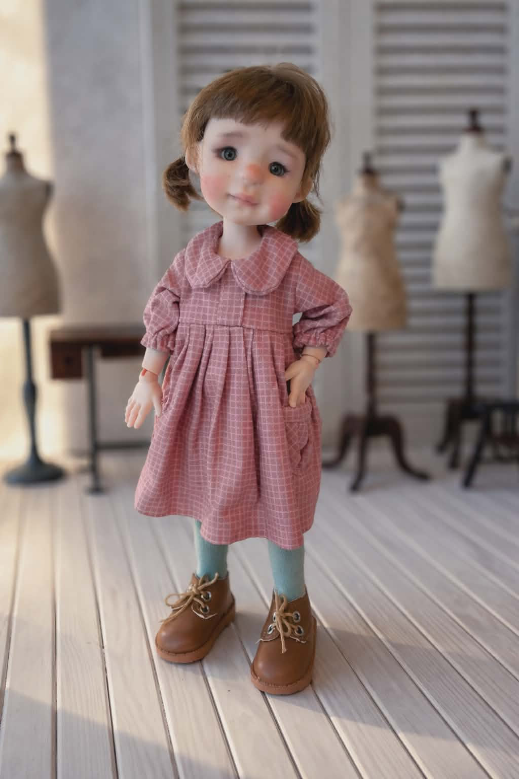 Handmade BJD resin doll Full Set Real mohair wig(choose Short brown or Red long tail-write a message) of high quality Clothing hand-sewn by me Artist: Chrishanthi – Ppinkydolls