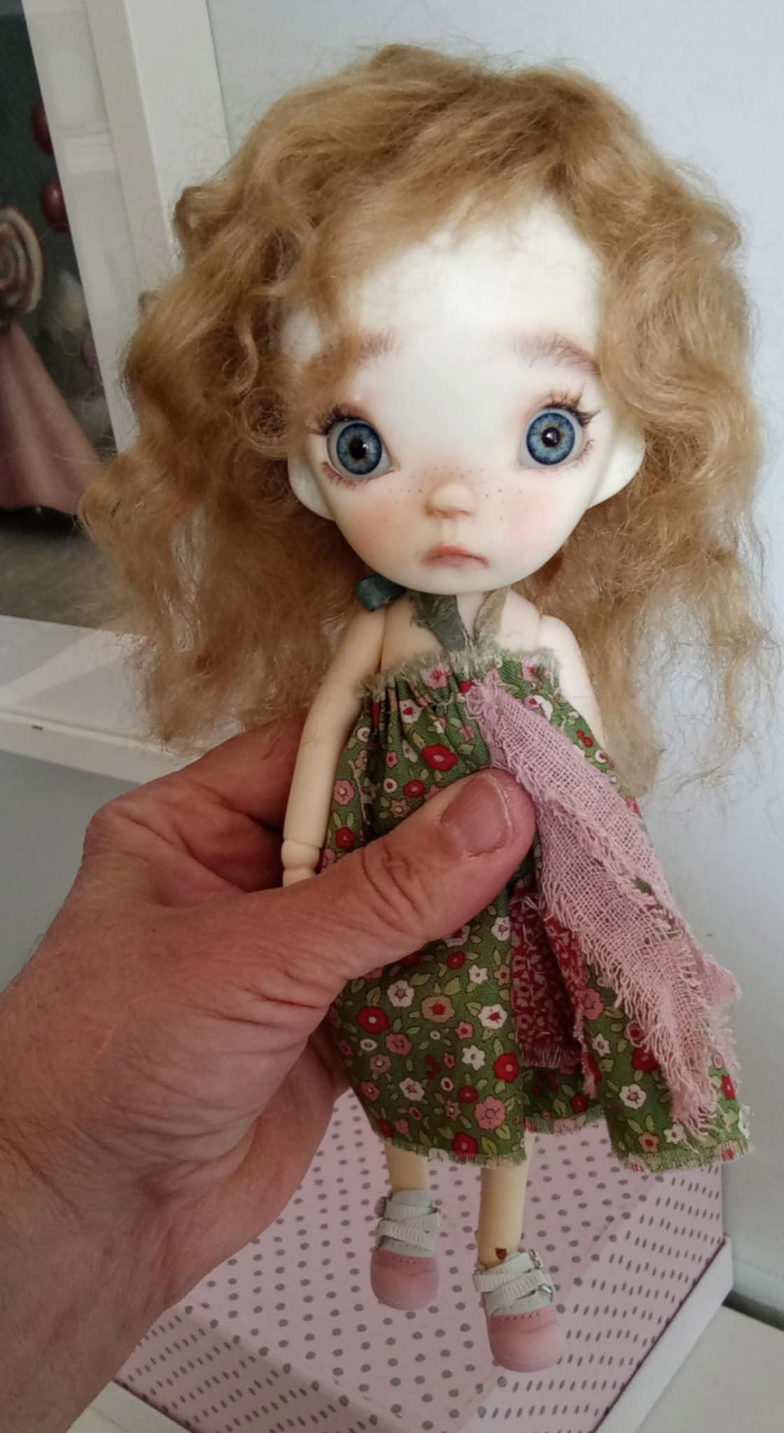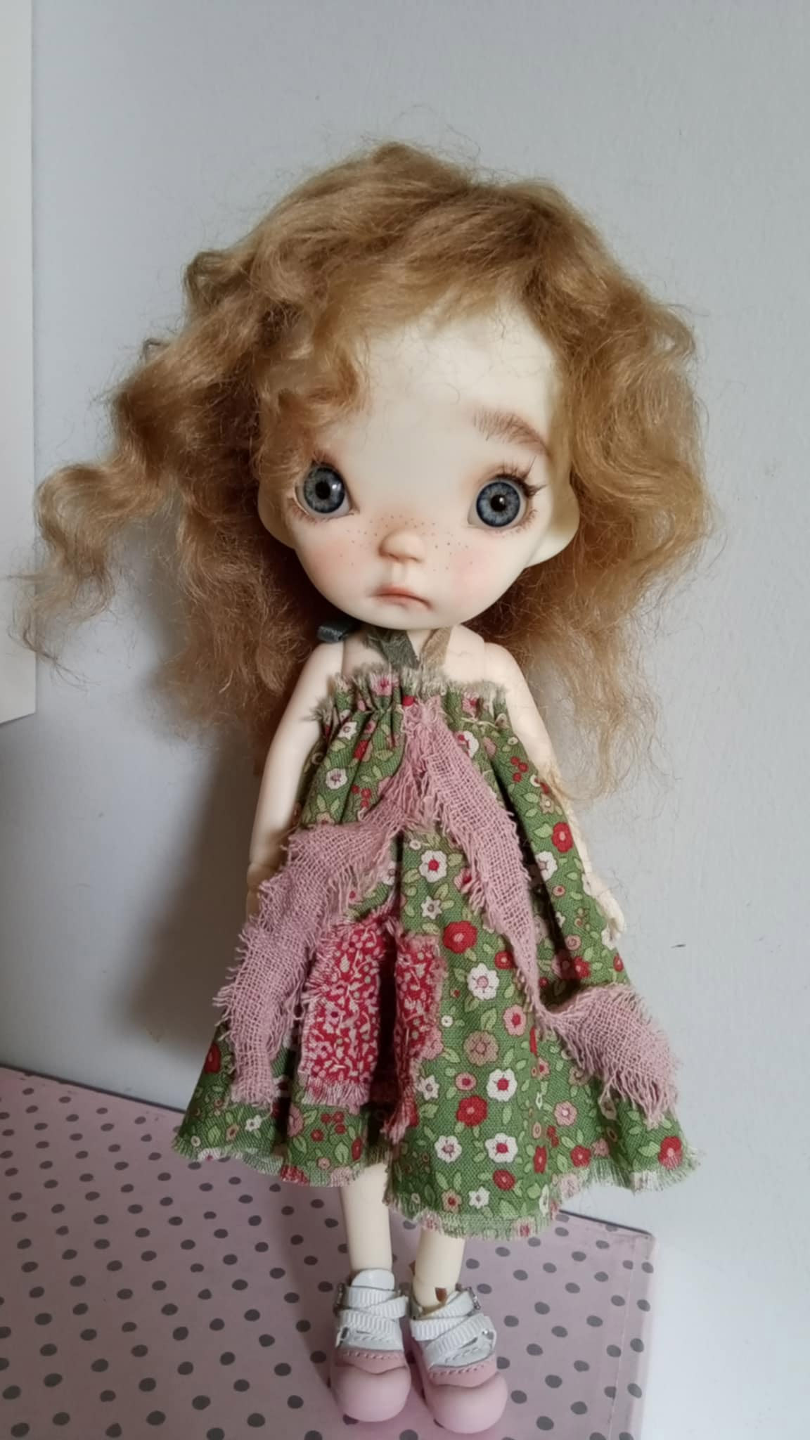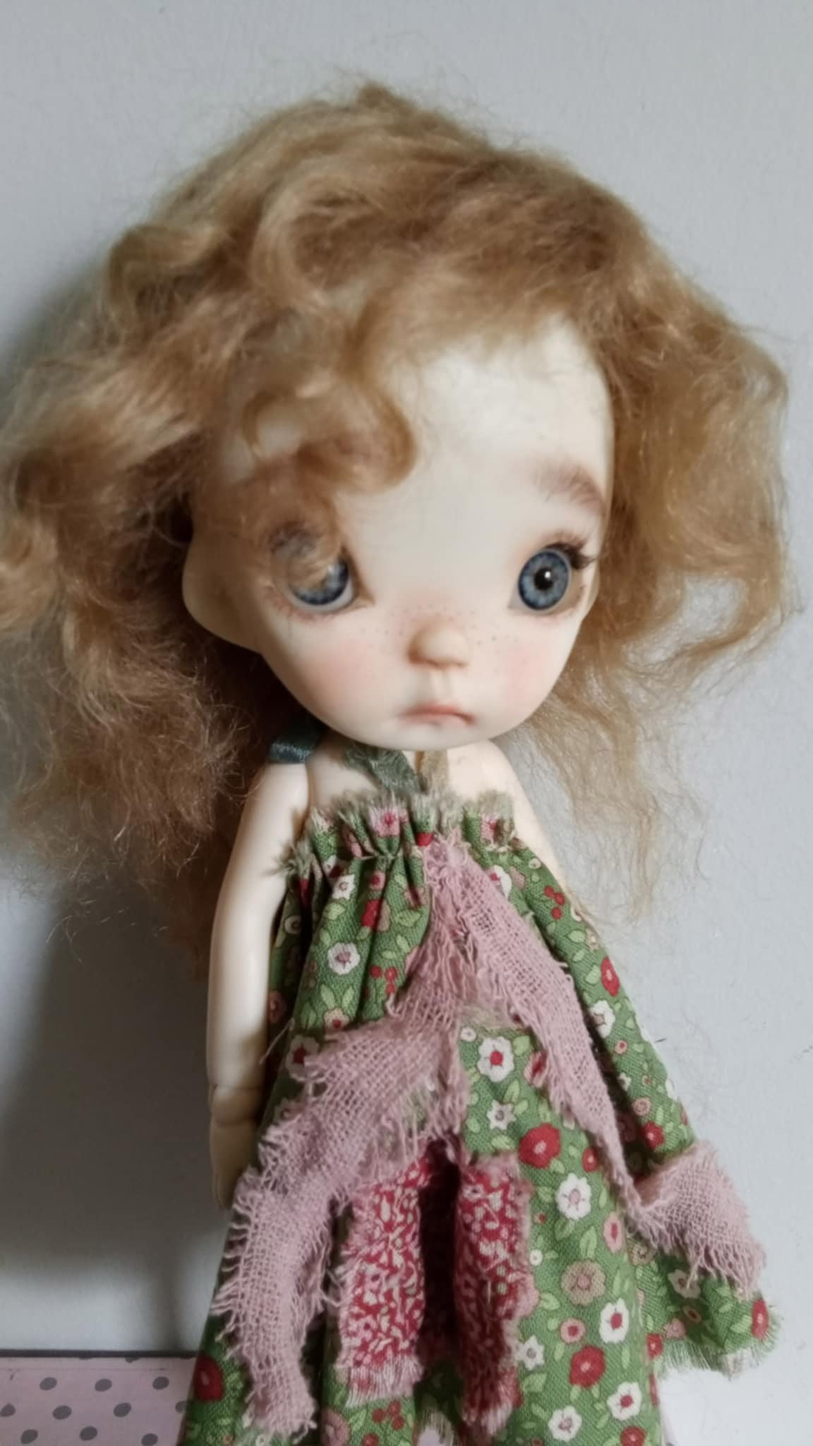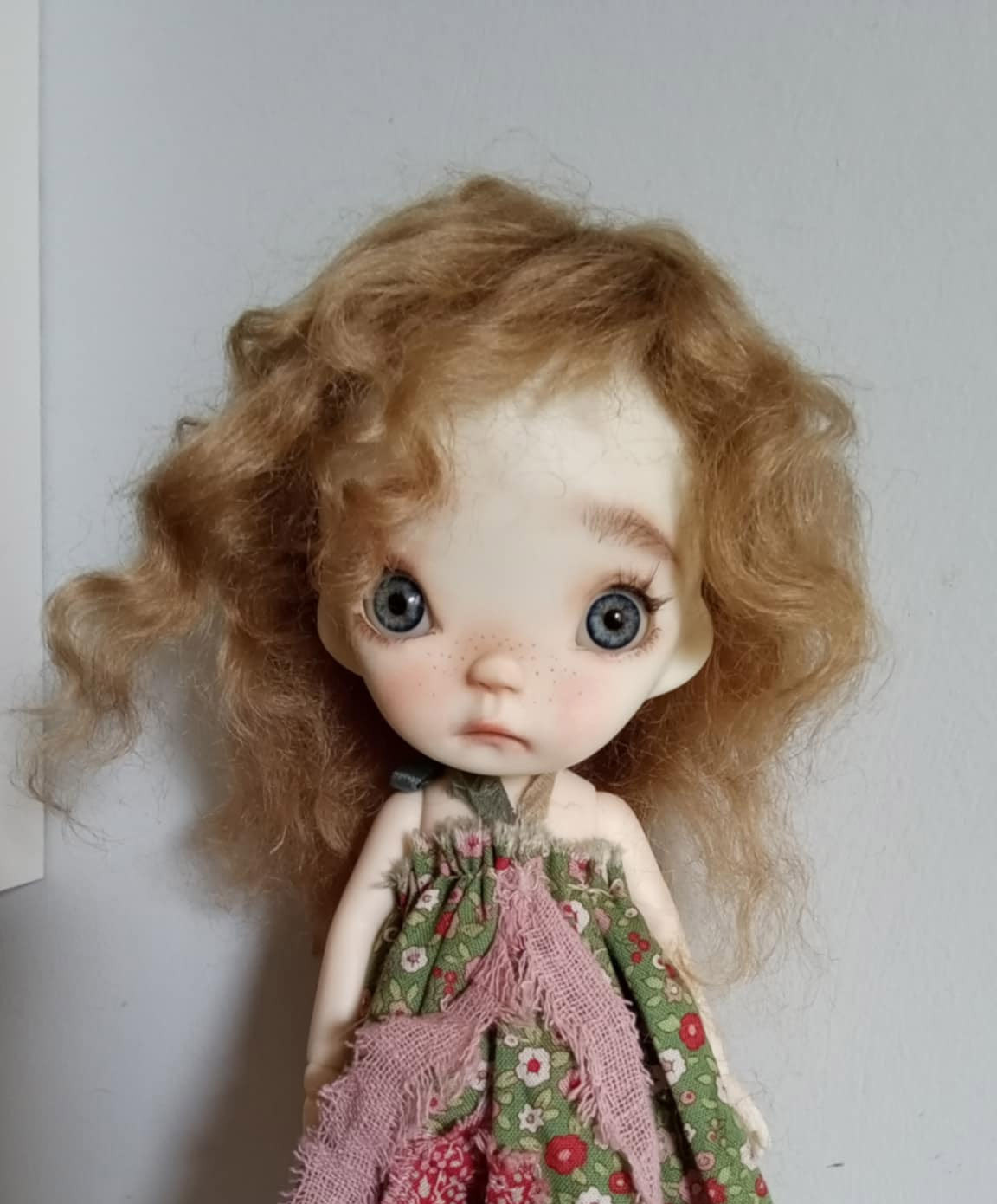 She is Pin..an innocent kid by PincoAmigo family and Ppinkydolls.She is 10 inches resin bjd doll,with real mohair ash blonde hair. Full set doll as in my photos.
