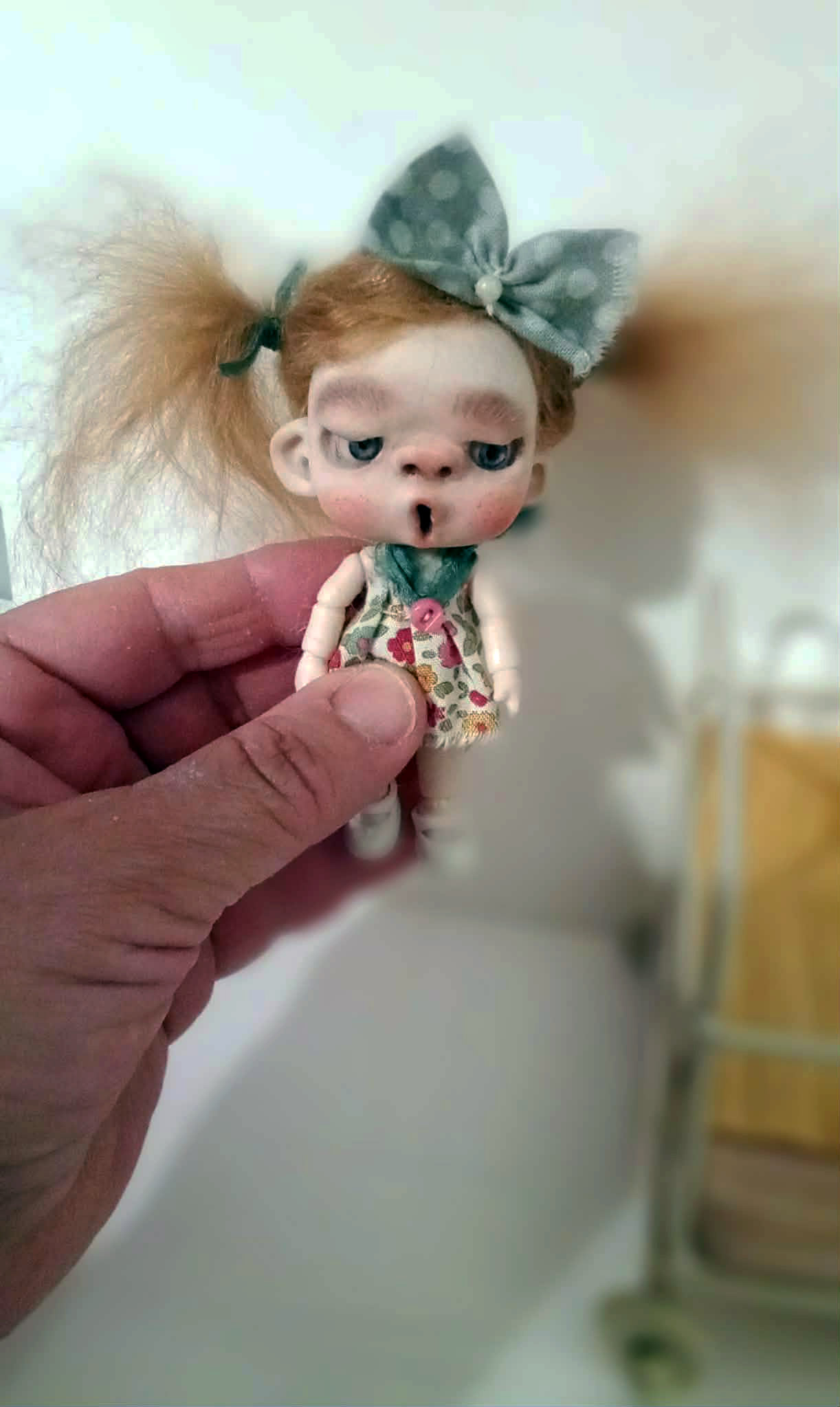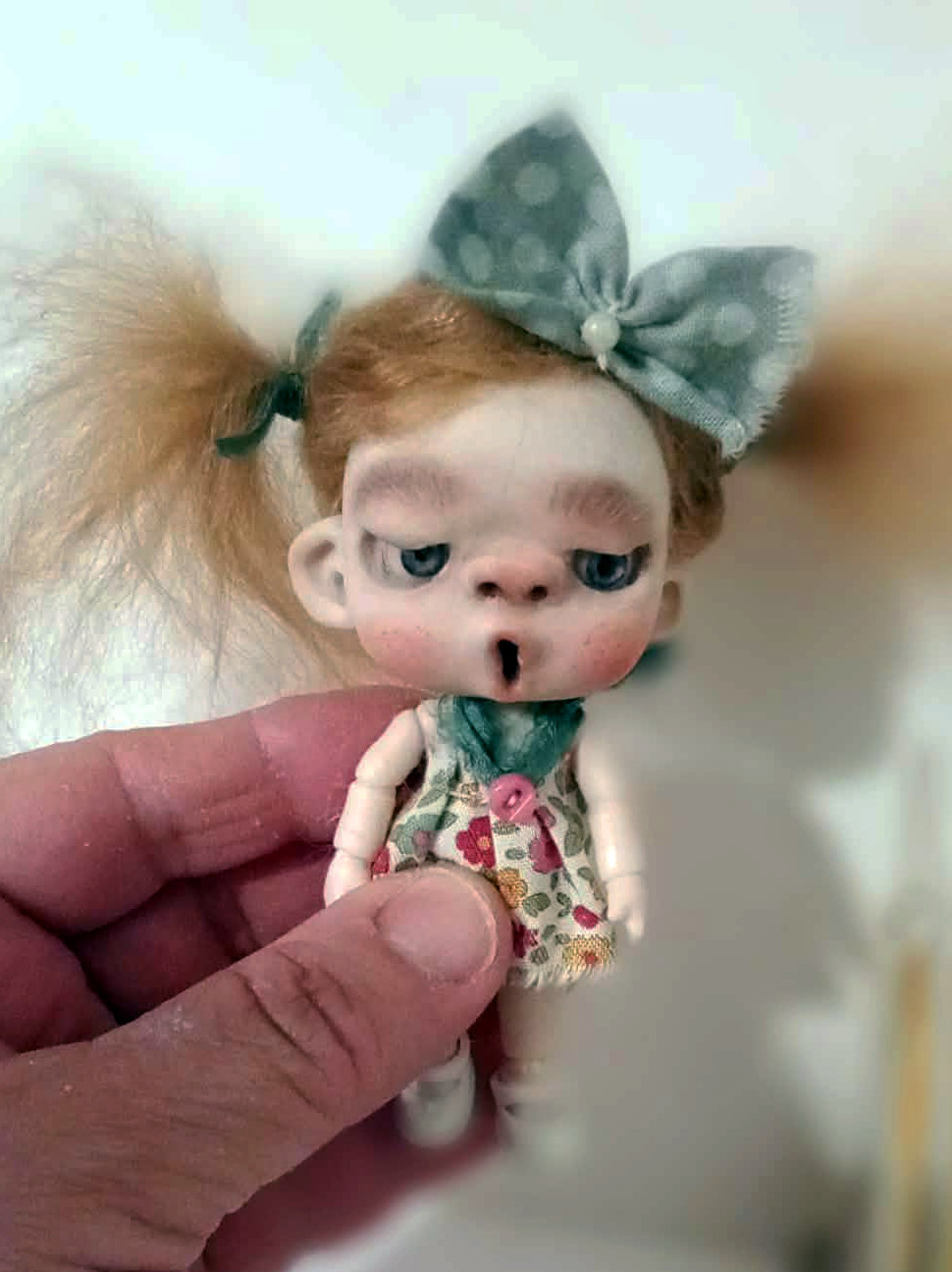 Material: resin clay head with assembled body,real mohair hair,realistic eyes,hand painting faceup